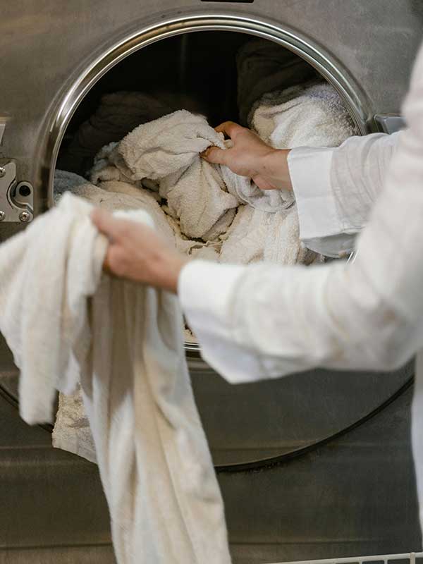 Safareig utiliza detergentes, suavizantes y desinfectantes de la máxima calidad en las dosis justas en función de la cantidad de prendas introducidas en la lavadora.